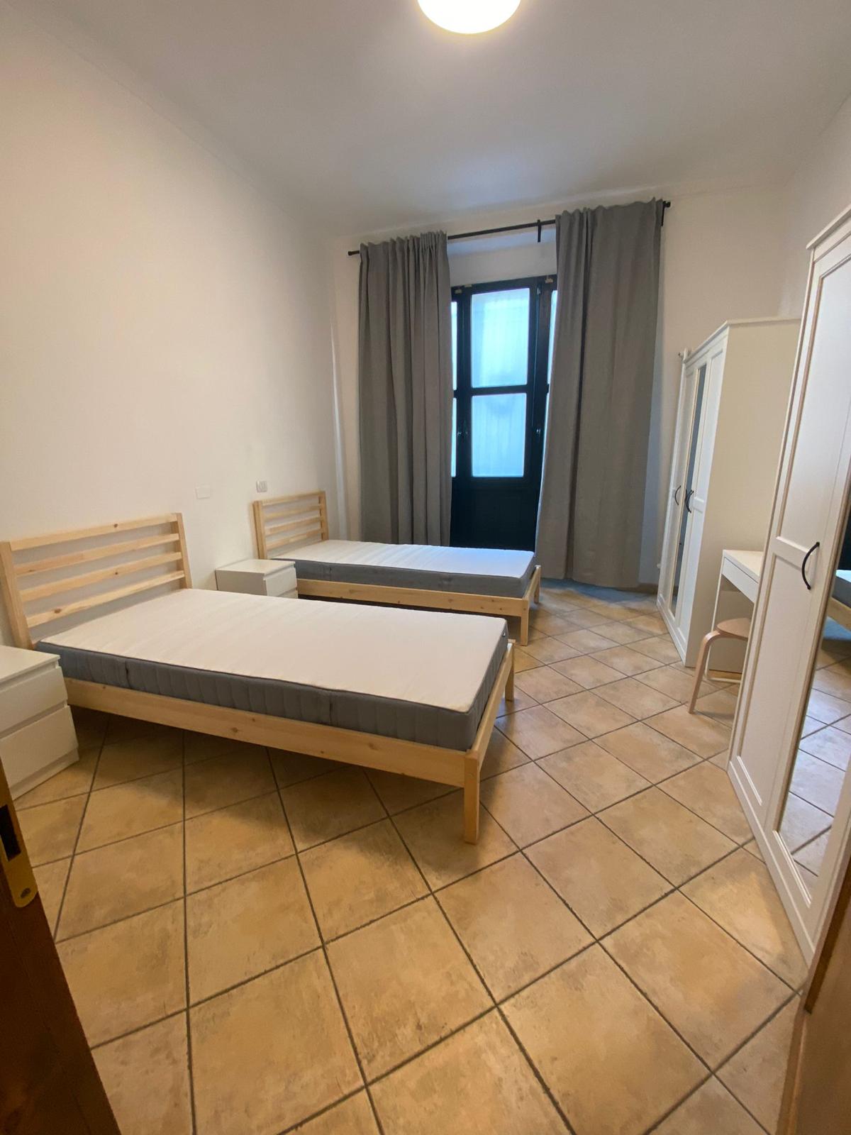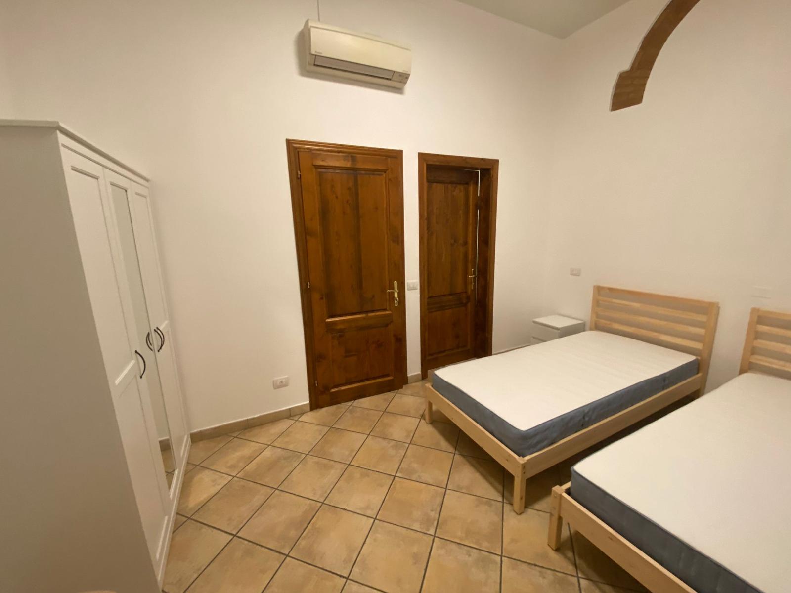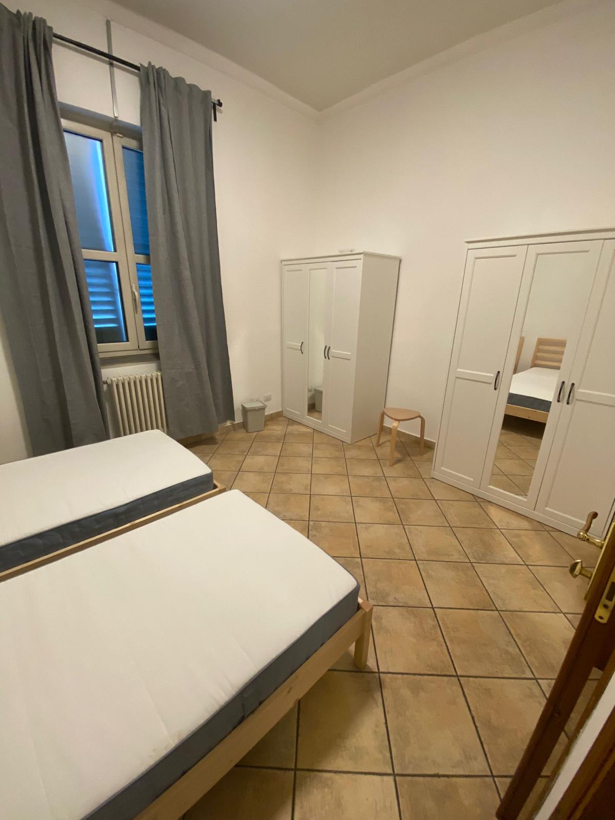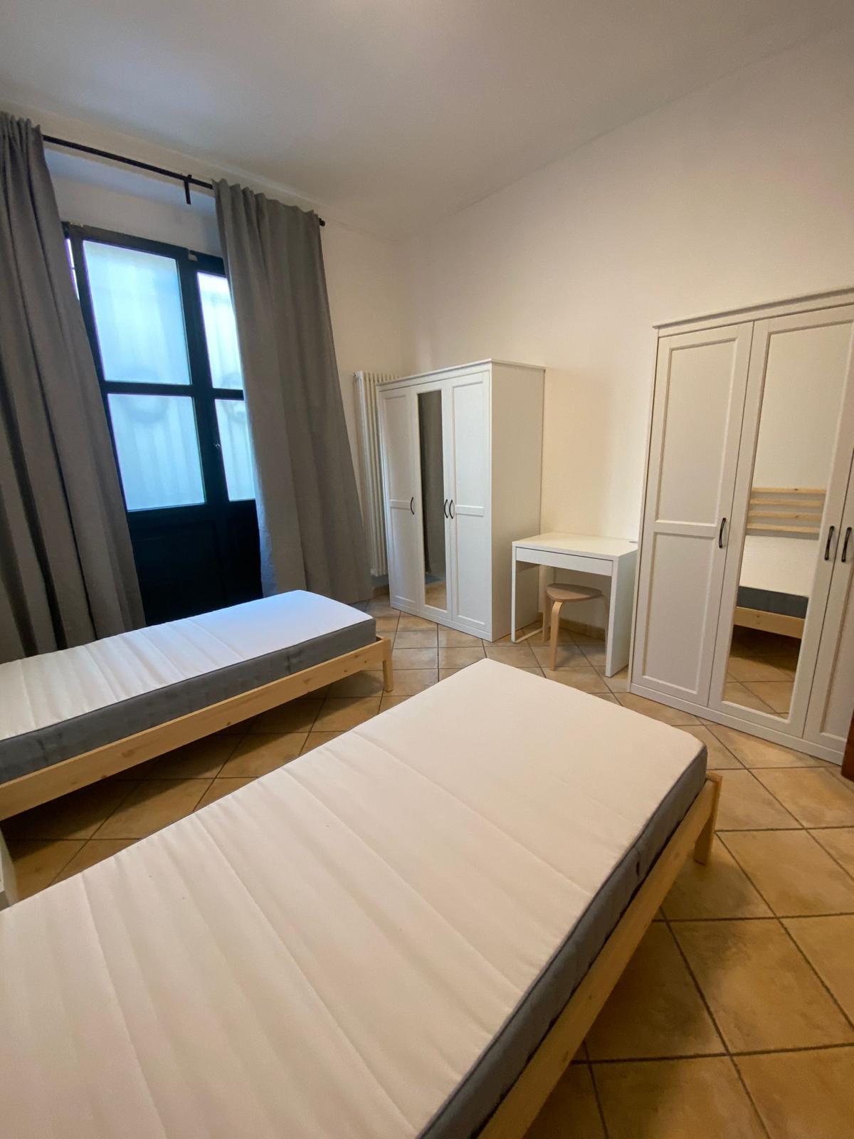 arredata con letto, armadio, comodino, una scrivania e sgabello, bagno completo di doccia; riscaldamento centralizzato, aria condizionata e WI-FI.
