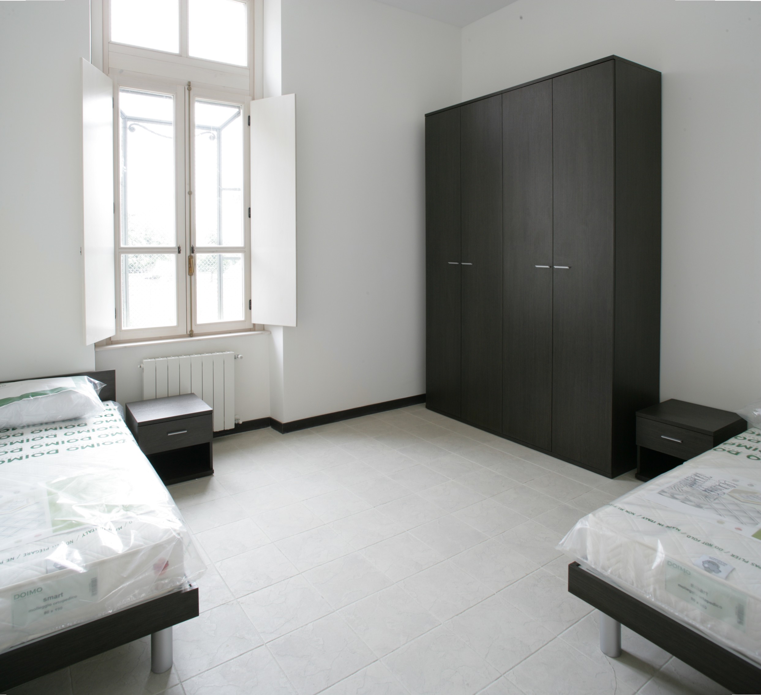 E’ situato al primo piano dell’Edificio F della Residenza Pompeo Leoni che comprende tre edifici (A, D ed F) con alloggi destinati a studenti universitari, ricercatori, dottorandi.