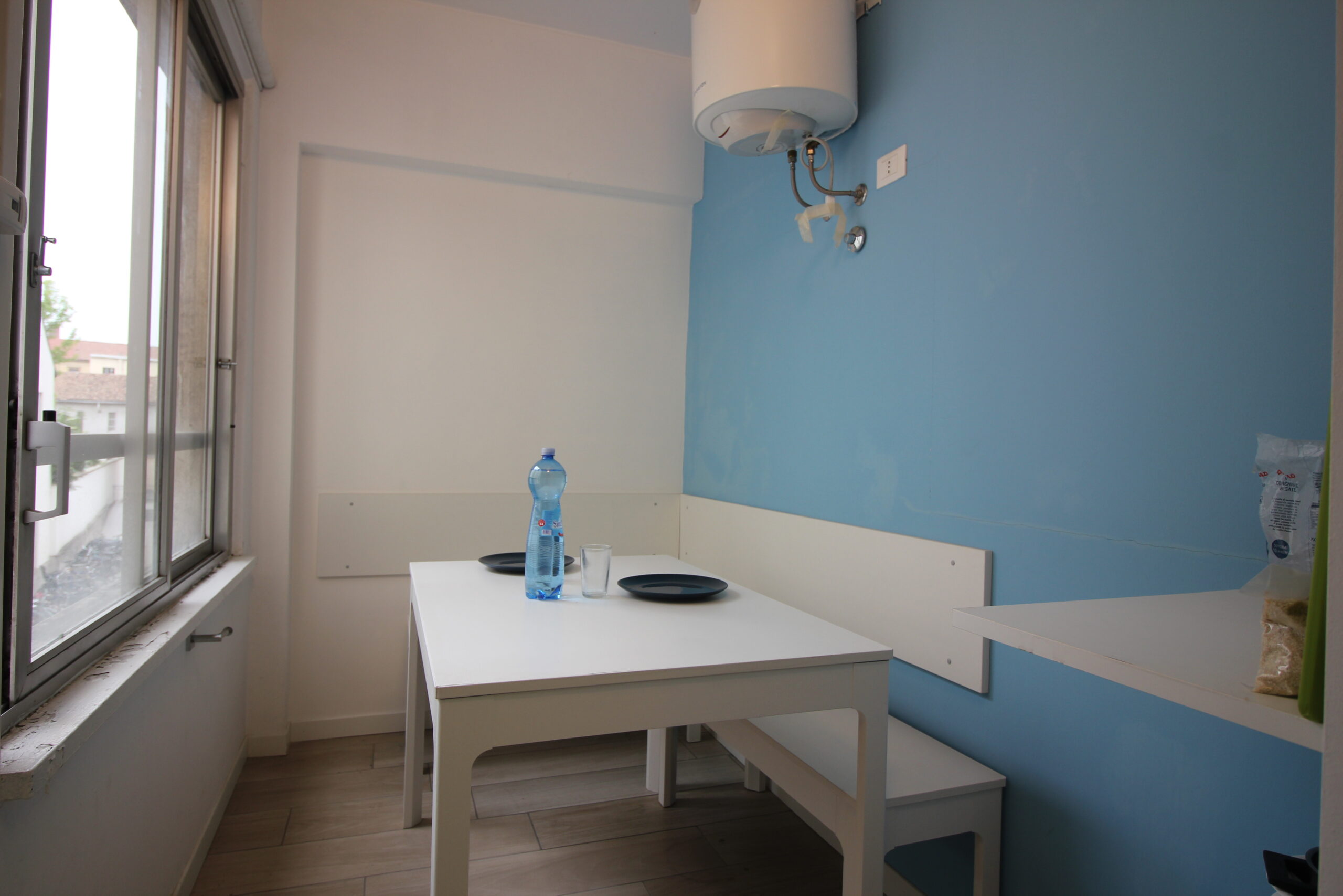 La stanza è completa di mobile cucina con microonde, mini-frigorifero, spazio soggiorno, letto singolo, bagno in comune con un’altra camera.