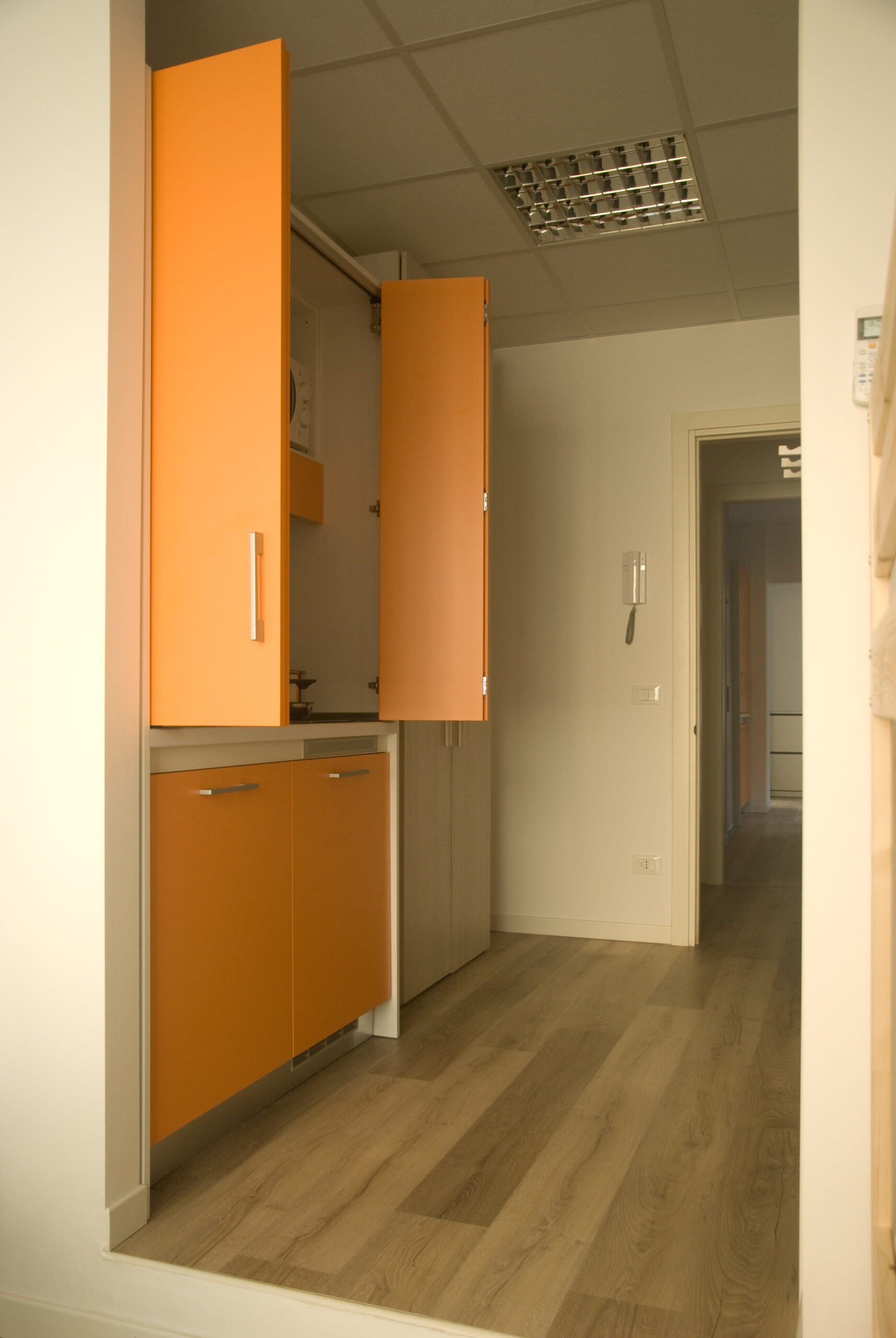Al primo piano è presente una cucina comune completa di forno, fornelli, frigorifero, tavolo e sedie mentre al piano terra è presente una lavanderia, dotata di lavatrice e asciugatrice a moneta, a uso esclusivo degli appartamenti gestiti da La Ringhiera.