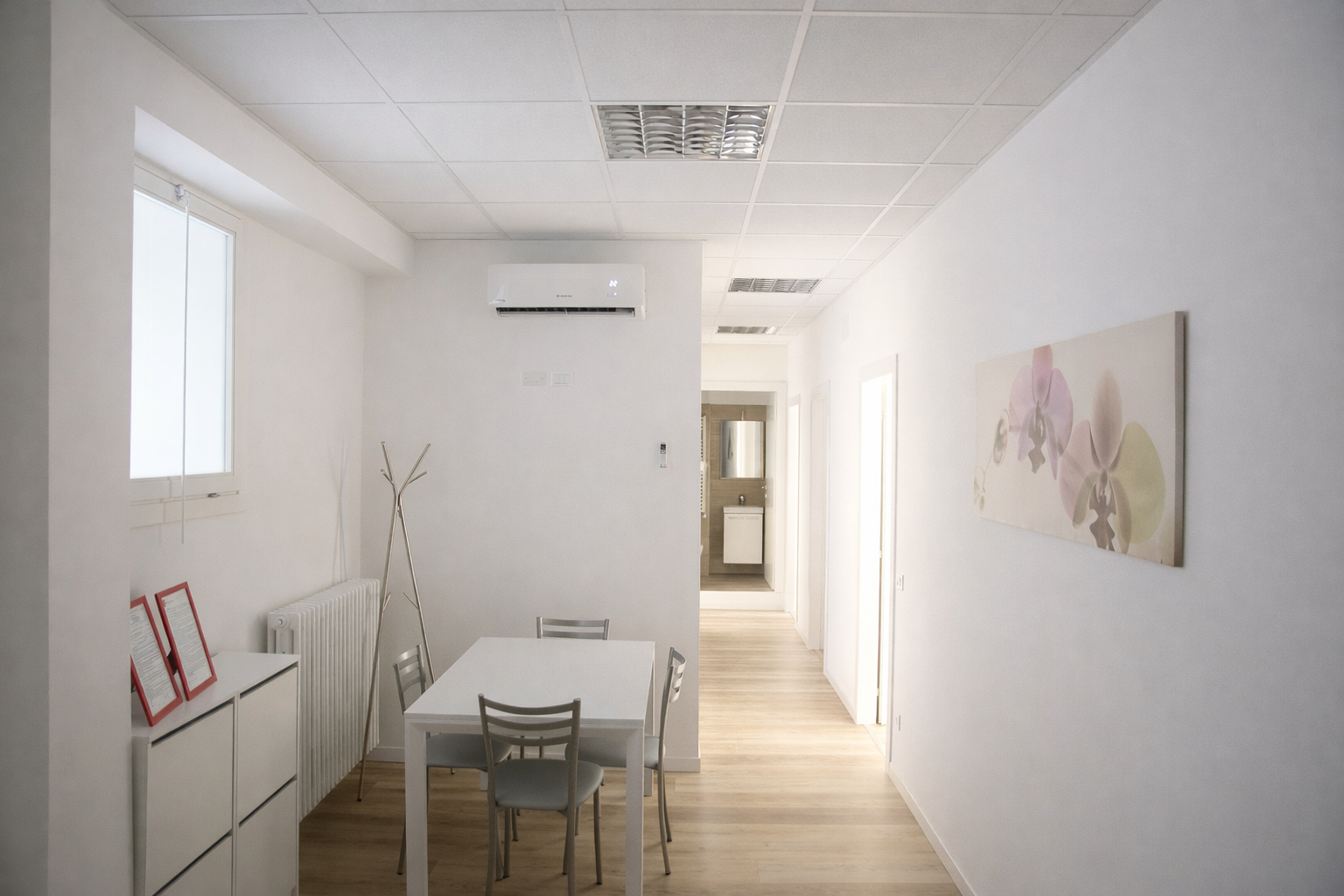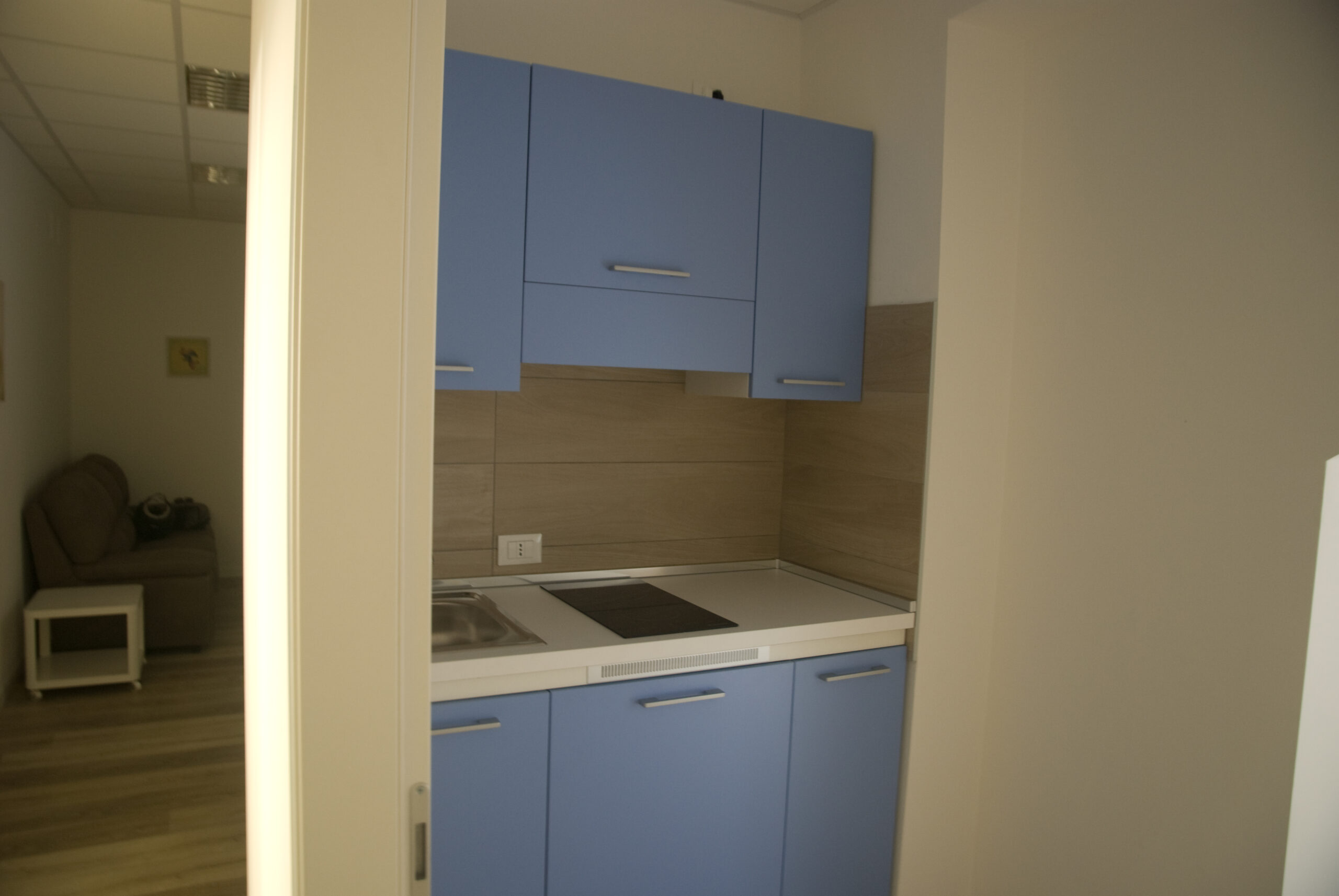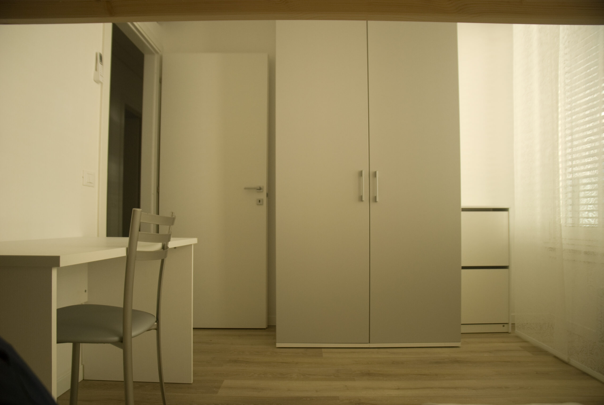 L’appartamento è composto da ingresso con soggiorno e cucina, tre camere singole e due bagni; completa l’abitazione un ampio terrazzo.