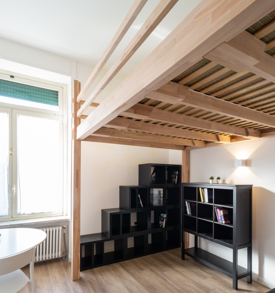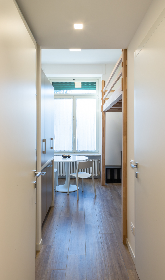 Camera attrezzata con soppalco all’interno della Residenza Don Carlo San Martino in Largo Sereni 1, in posizione strategica tra il quartiere Città Studi e Forlanini e ottimamente collegata con il centro città dalla metropolitana linea blu a soli 350 metri (fermata Argonne).