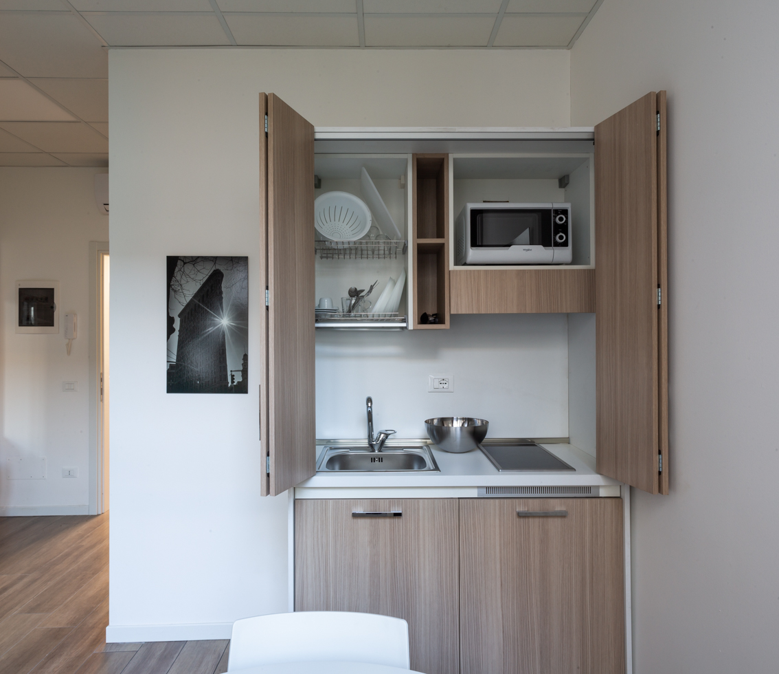 – una cucina attrezzata e corredata (con frigorifero, forno, piano a induzione, microonde);