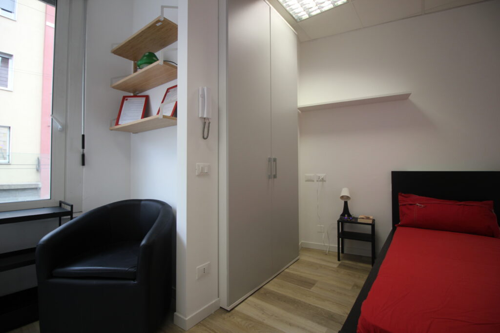 Dispone di camere singole in appartamenti di diverse tipologie (bilocale, trilocale e quadrilocale), camere singole con bagno ad uso esclusivo e monolocali. Tutte le soluzioni sono arredate.