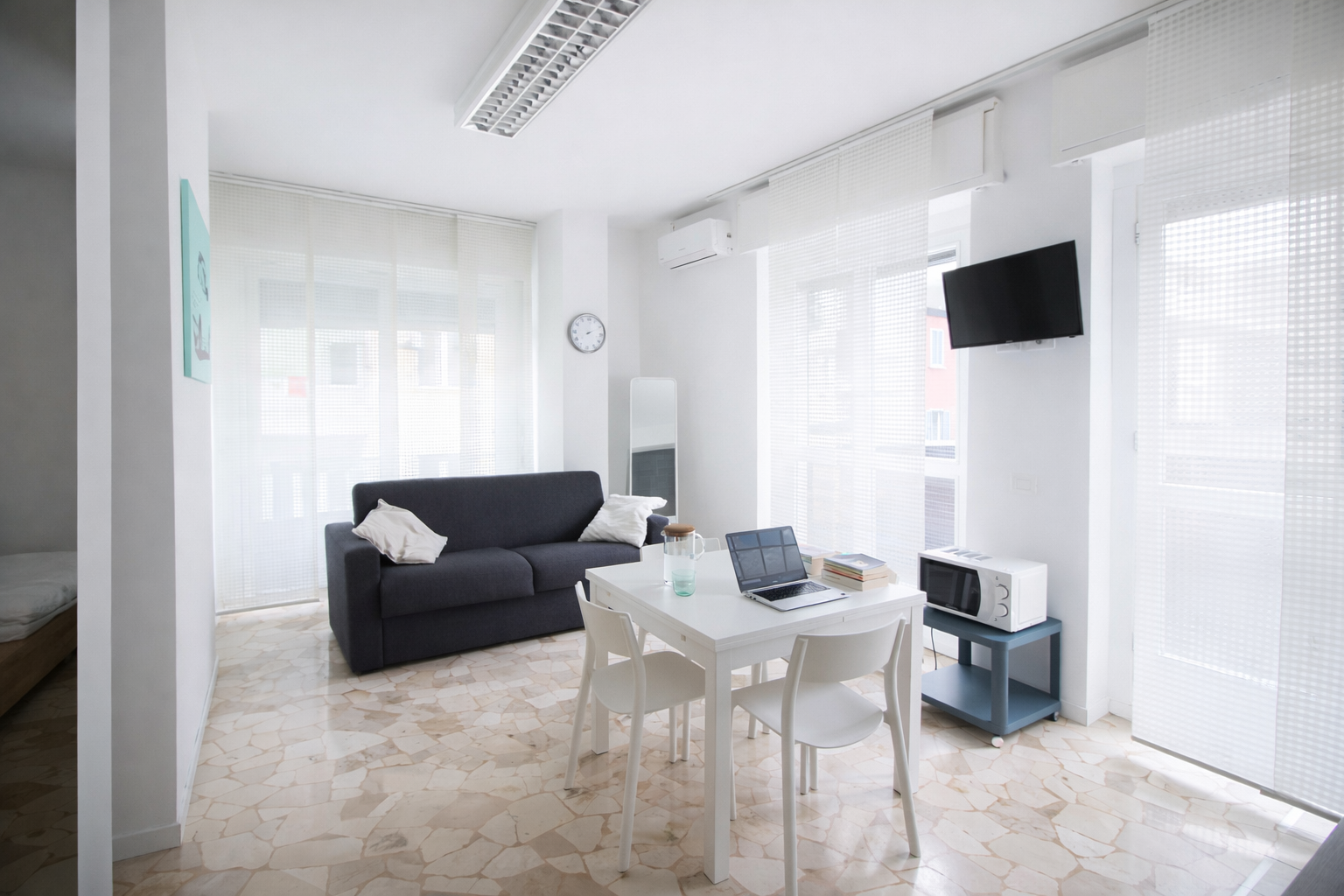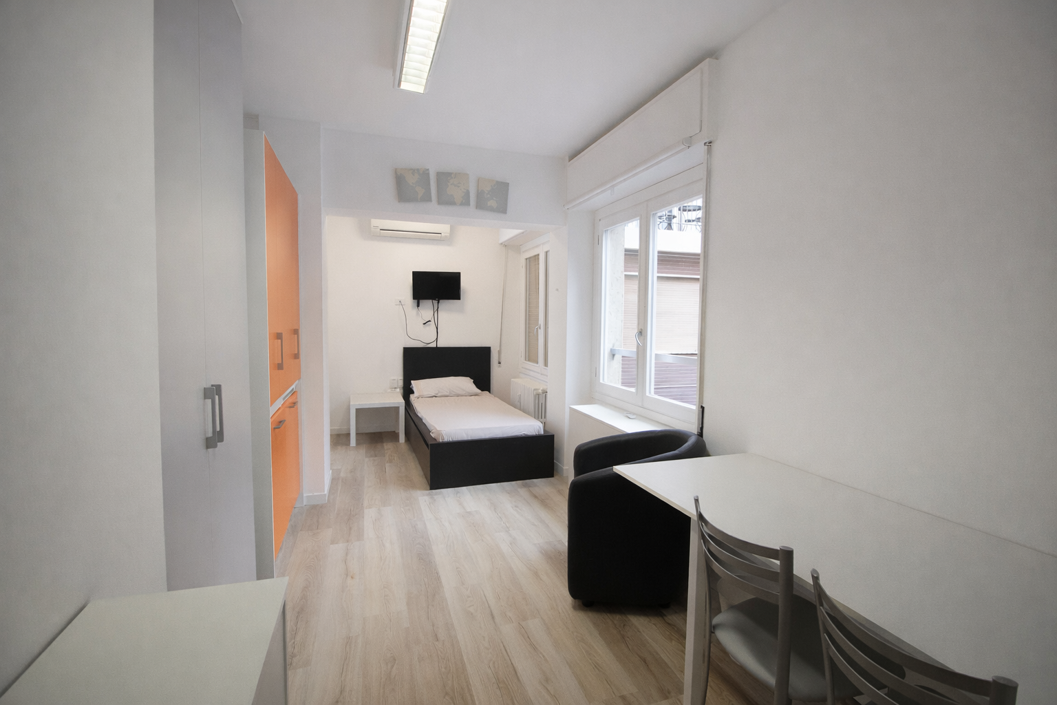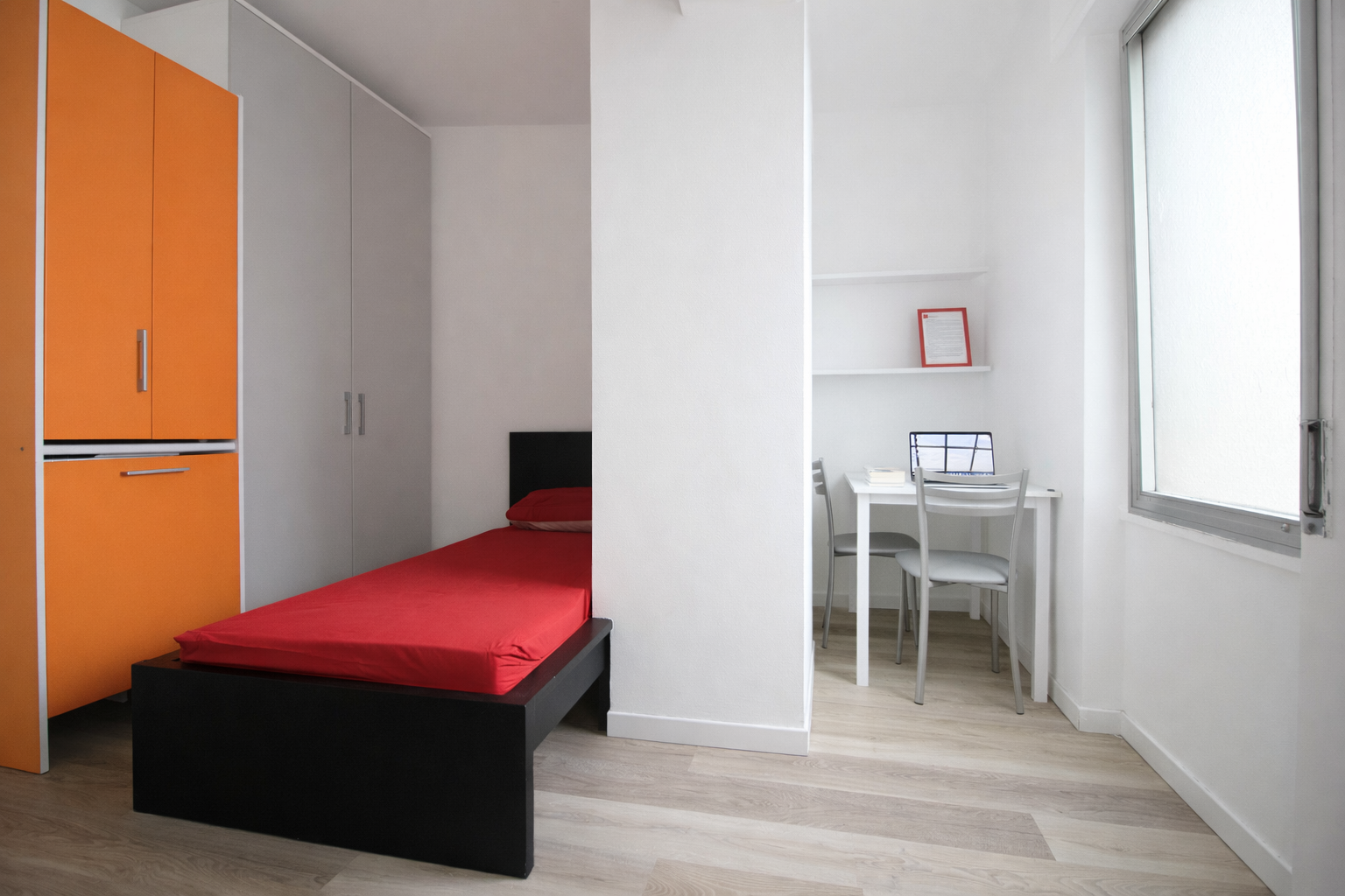 Dispone di camere singole in appartamenti di diverse tipologie (bilocale, trilocale e quadrilocale), camere singole con bagno ad uso esclusivo e monolocali. Tutte le soluzioni sono arredate.